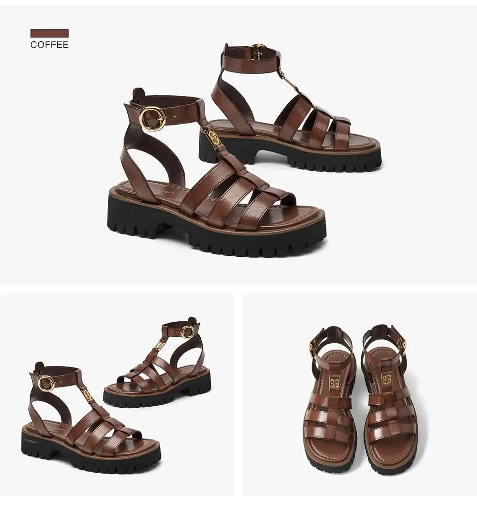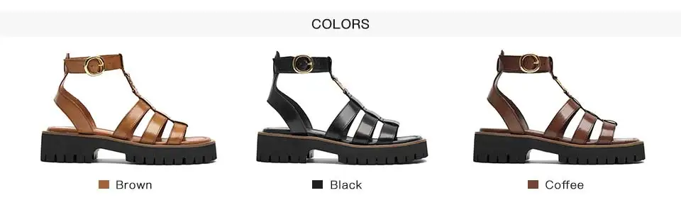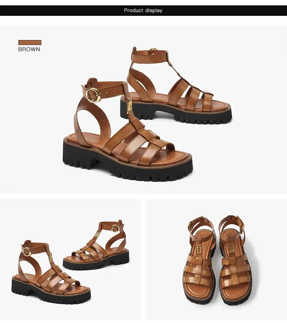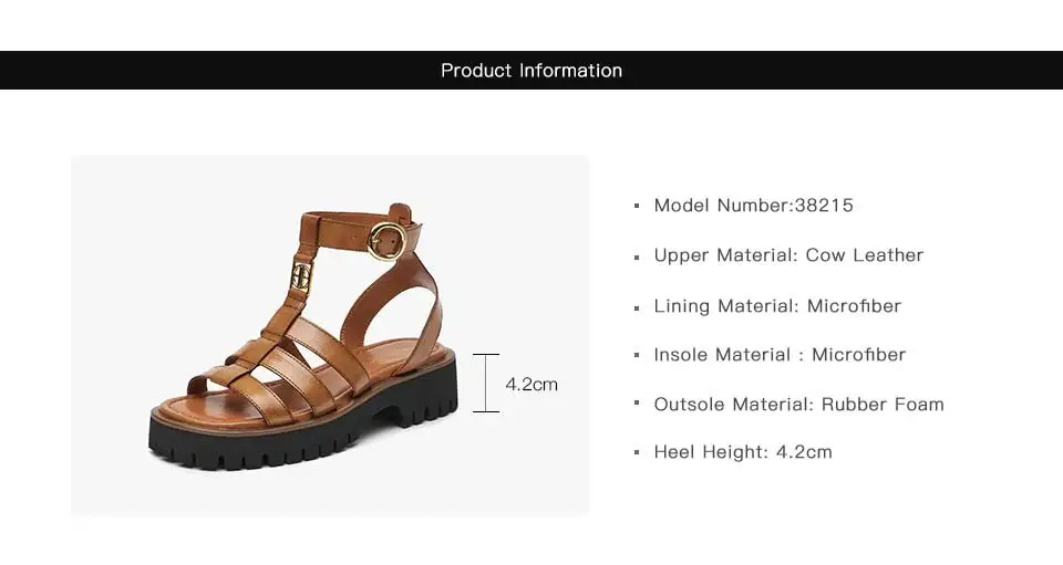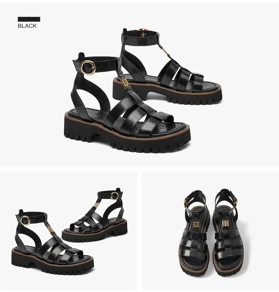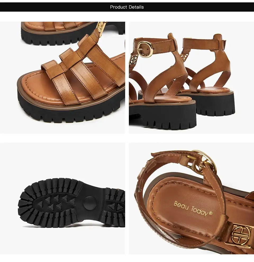BeauToday Gladiator Sandals Women Genuine Leather Round Toe Ankle Metal Buckle Platform Summer Ladies Shoes Handmade 38215