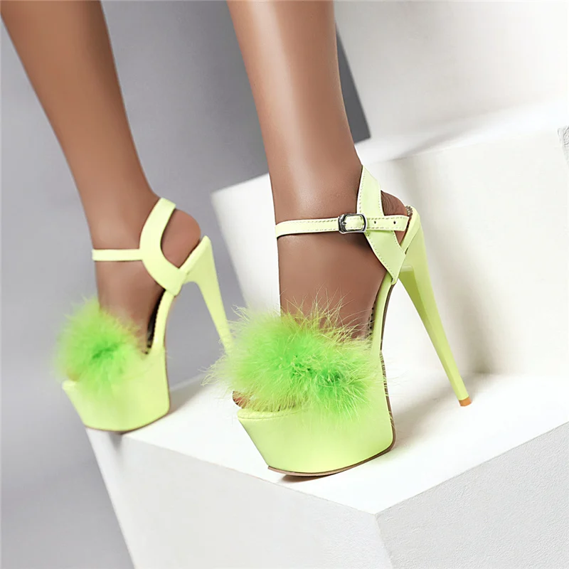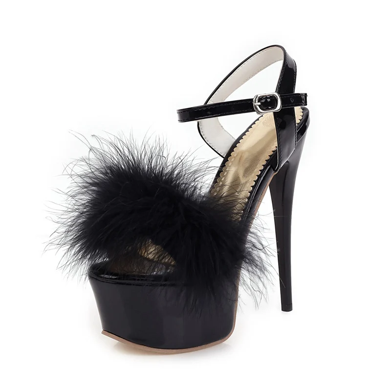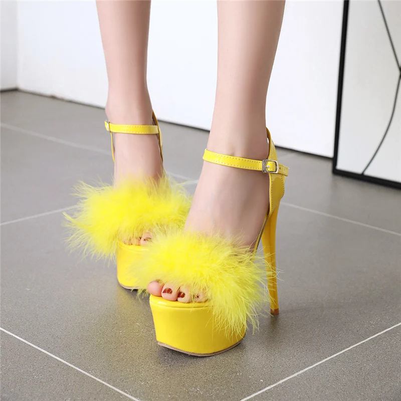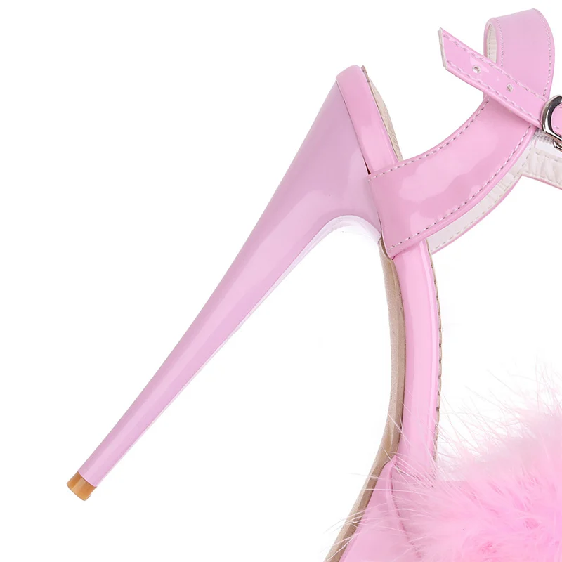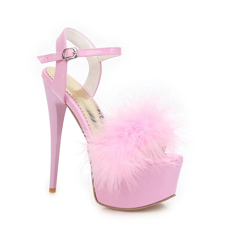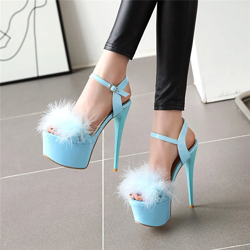 Gladiator Sandals Women Summer Platform High Heels Wedding Party Shoes Sexy Pink Red Blue Feather Dance Shoes Female Large Size